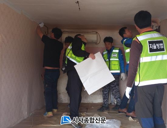À̹ø ºÀ»çȰµ¿À» À§ÇØ ³ª»ê¸éÀÚÀ²¹æ¹ü´ë(´ëÀå Á¤Àº±â) ȸ¿ø 12¸íÀÌ Âü¿©ÇØ Àç´É±âºÎ¸¦ Çß´Ù. ȸ¿øµéÀº ÀåÆÇ°ú µµ¹è¸¦ »õ·Î ÇÏ°í ½ÌÅ©´ë¸¦ ±³Ã¼ÇÏ´Â ÇÑÆí, Áý ¾ÈÆÆÀ» ±ú²ýÇÏ°Ô Ã»¼ÒÇÏ´Â µ¥ ±¸½½¶¡À» Èê·È´Ù. ¼ö¸®µÈ ÁýÀ» º» ÁÖ¹ÎÀº ¡°±º°ú ÁֹεéÀÌ ¸ðµÎ °ü½ÉÀ» °®°í µµ¿òÀ» Áà ÈûÀÌ ³´Ù¡±¸ç °í¸¶¿òÀ» ³ªÅ¸³Â´Ù. Á¤Àº±â ¹æ¹ü´ëÀåÀº ¡°¾î¸£½ÅÀÌ ´Þ¶óÁø ÁýÀ» º¸¸ç ÁÁ¾ÆÇÏ½Ã°í °í¸¶¿öÇϽô ¸ð½ÀÀ» º¸¸é º¸¶÷À» ´À³¤´Ù¸ç, ´õ ¸¹Àº »ç¶÷µé¿¡°Ô µµ¿òÀÌ µÉ ¼ö ÀÖµµ·Ï ³ë·ÂÇϰڴ١±°í ¸»Çß´Ù.