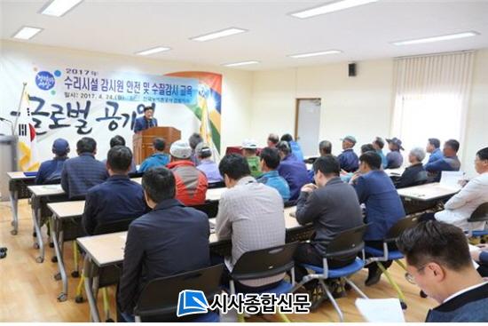 ¿Ã ÇÑÇØµµ ¾ÈÀüÇÑ ³ó¾÷±â¹Ý½Ã¼³ À¯Áö°ü¸®¿Í dz³â³ó»ç¸¦ À§ÇØ Çѱ¹³ó¾îÃ̰ø»ç ÁøµµÁö»ç¿¡¼ °ü¸®Çϰí ÀÖ´Â 120°³ ³ó¾÷±â¹Ý½Ã¼³¹°À» ¾ÈÀüÇÏ°í °úÇÐÀûÀÎ ¹° °ø±ÞÀ» ÇÒ ¼ö ÀÖµµ·Ï ¼ö¸®½Ã¼³°¨½Ã¿ø 48¸íÀ» ´ë»óÀ¸·Î ±³À°À» ½Ç½ÃÇÏ¿´´Ù. ±ÝÀÏ ±³À°Àº ¼ö¸®½Ã¼³°¨½Ã¿øÀÇ Ã¥ÀÓ°ú Àǹ« °¢ ½Ã¼³¹°(¾ç¼öÀå, ¹è¼öÀå) ÀÛµ¿ ¹× °ü¸® ¿ä·É, Àú¼öÁö¿¡ ¼öÁú¿À¿° °¨½Ã Ȱµ¿, ³ó¾÷¿ë¼ö °ü¸® ¿ä·É, ÀçÇØ ´ëºñ ±Ù¹« ü°è ¼ø¼·Î ±³À°ÀÌ ÁøÇà µÇ¾ú´Ù.