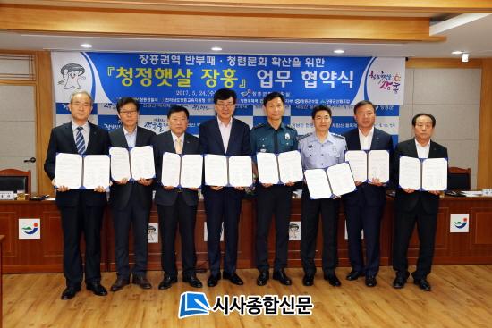 À̳¯ Çù¾à½Ä¿¡´Â ÀåÈﱺ, ÀåÈï°æÂû¼, Àü¶ó³²µµÀåÈï±³À°Áö¿øÃ», ÀåÈï±³µµ¼Ò, ÀåÈï¿ìü±¹, ³óÇùÀåÈﱺÁöºÎ, ÀåÈﱺ¼ö»ê¾÷Çùµ¿Á¶ÇÕ, ÀåÈﱺ»ê¸²Á¶ÇÕ µî 8°³ Áö¿ª ±â°üÀÌ Âü¿©Çß´Ù. À̹ø¡®Ã»Á¤ÇÞ»ì ÀåÈ±¸¼ºÀº Áö³ 3¿ù ÀåÈﱺÀÌ K-water Àü³²¼³²±Ç°ü¸®´Ü µî °ø±â¾÷, ½Ã¹Î¡¤º¹Áö´Üü¿Í ¾÷¹«Çù¾àÀ» ¸ÎÀº ÈÄ, ÀåÈï Áö¿ª û·Å ¹®È È®»êÀ» À§ÇØ Áö¿ª ÁÖ¿ä °ø°ø±â°ü µî°úÀÇ Ã»·ÅȰµ¿ Çù·ÂÀ» Á¦¾ÈÇÏ¸é¼ ÀÌ·ïÁ³´Ù.