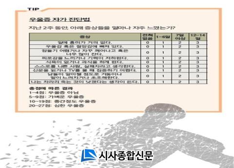 ÀϹÝÀûÀ¸·Î ¿ì¿ïÁõ ȯÀÚÀÇ 60~70%´Â ÀÚ»ìÀ» »ý°¢Çϰí 10~15%´Â ÀÚ»ìÀ» ½ÃµµÇÒ ¼ö ÀÖ´Ù. ÇÏÁö¸¸ Æò»ý µ¿¾È Á¤½ÅÁúȯÀ» °æÇèÇÑ ¿ì¸®³ª¶ó ±¹¹Î Áß 22.2%¸¸ÀÌ Á¤½Å°ú ÀÇ»ç µî¿¡°Ô Á¤½Å°Ç° ¹®Á¦¸¦ ÀdzíÇϰųª Ä¡·á¹ÞÀº °æÇèÀÌ ÀÖ´Â °ÍÀ¸·Î Á¶»çµÆÀ¸¸ç, ÀÌ´Â 34~43%¿¡ À̸£´Â È£ÁÖ¡¤Ä³³ª´Ù¡¤¹Ì±¹¿¡ ºñÇØ ¸Å¿ì ³·Àº ¼öÁØÀÌ´Ù.¿ì¿ïÀº Á˰¡ ¾Æ´Ï´Ù, Ä¡·á¹Þ¾Æ¾ß ÇÒ Áõ»óÀÌ´Ù