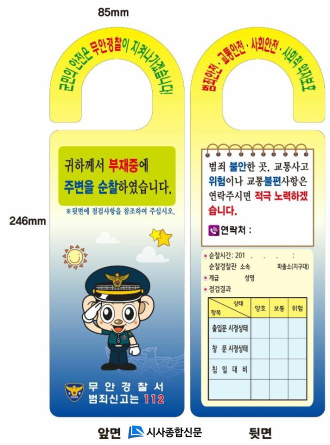 ¡º¸¶À»³¡Áý È¿ÀÚ¼Õ¼øÂû¡»À̶õ ±âÁ¸ÀÇ ¹üÁË Ãë¾àÁö¿¡ ´ëÇÑ °æÂûÁß½ÉÀÇ ¼øÂû¹æ½ÄÀ» º¸¿ÏÇÏ¿© 9°³ À¾.¸é 331°³ ÀÚ¿¬¸¶À»º°·Î 3~4°³ÀÇ ³¡Áý ÃÑ 1071°³¼Ò¸¦ ¼±Á¤, ¼øÂûÂ÷¸¦ Ÿ°í µµ·Îº¯À» Áö³ª°¡´Â ¼øÂûÀÌ ¾Æ´Ñ Áö¿ª¸¶À»ÀÇ ¹æ¸éº° ³¡Áý±îÁö ÁÖ.¾ß°£ ¼øÂûÀ» ½Ç½ÃÇÏ´Â ÁֹιÐÂøÇü ¼øÂû·Î Ä¡¾È°ü·Ã ÁÖ¹ÎÀǰßÀ» ûÃëÇϰí ÇØ°áÀ» µµ¸ðÇÏ´Â ¹«¾È°æÂûÀÇ Æ¯¼ö½ÃÃ¥ÀÌ´Ù.