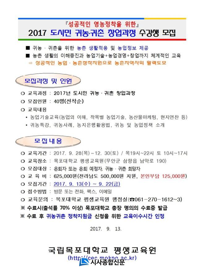 ±³À°°úÁ¤Àº ¡â³ó¾÷ÀÇ ÀÌÇØ ¡âÀÛ¸ñº° ³ó¾÷±â¼ú ¡â³ó»ê¹°¸¶ÄÉÆÃ ¡âÇöÁö ¿¬Âù µîÀÇ ³ó¾÷±â¼ú±³À°°ú ¡â±Í³óƯ° ¡â±Í³ó»ç·Ê ¡â³óÁöÀºÇàȰ¿ë¹ý ¡â±Í³ó ¹× ³ó¾÷Á¤Ã¥ ¼Ò°³ µî ³óÃÌ »ýȰÀÇ ÀÌÇØÁõÁø°ú ³óÃÌ »ýȰ ÀûÀÀ ¹× ³ó¾÷Á¤º¸ Á¦°ø µî ¼º°øÀûÀÎ ³ó¾÷.³óÃÌ Á¤ÂøÁö¿øÀ» À§ÇÑ ÇÁ·Î±×·¥À¸·Î ÁøÇàµÈ´Ù. ¼ö·á½Ã Ãâ¼®·ü 70% ÀÌ»ó ÃæÁ·½Ã ¸ñÆ÷´ë ÃÑÀå ¸íÀÇÀÇ ¼ö·áÁõÀÌ ¹ß±ÞµÇ¸ç ¼ö·á ÈÄ ±Í³ó±ÍÃÌ ÀåÂøÁö¿ø±Ý ½ÅûÀ» À§ÇÑ ±³À°À̼ö½Ã°£ÀÌ ÀÎÁ¤µÈ´Ù. ±³À°ºñ´Â Àü¶ó³²µµ¿¡¼ 50¸¸ ¿øÀÌ Áö¿øµÇ¸ç ¼ö°»ýºÎ´ãÀº 12¸¸5õ ¿øÀÌ´Ù.