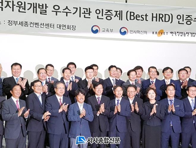 ±³À°ºÎ¿Í °í¿ë³ëµ¿ºÎ°¡ ÃѰýÇϰí Çѱ¹Á÷¾÷´É·Â°³¹ß¿ø ¹× Çѱ¹»ê¾÷Àη°ø´ÜÀÌ ÁÖ°üÇÏ´Â ¡®2017³â ÀÎÀûÀÚ¿ø°³¹ß ¿ì¼ö±â°ü ÀÎÁõ(Best HRD: Best Human Resources Developer)»ç¾÷¡¯¿¡¼ ÀçÀÎÁõ ±â°üÀ¸·Î ¼±Á¤µÇ¾î 2010³âºÎÅÍ 3ȸ ¿¬¼Ó ¡®¿ì¼ö ÀÎÁõ±â°ü¡¯À¸·Î ¼±Á¤µÇ´Â Äè°Å¸¦ °ÅµÎ¾î, 9¿ù 22ÀÏ Á¤ºÎ¼¼Á¾ÄÁº¥¼Ç¼¾ÅÍ¿¡¼ °ÅÇàµÈ ÀÎÀûÀÚ¿ø°³¹ß ¿ì¼ö±â°ü ÀÎÁõ ½Ã»ó½Ä¿¡¼ ¸ñÆ÷´ë Á¶ºÀ·¡ »ç¹«±¹ÀåÀÌ ´ëÇÐÀ» ´ëÇ¥ÇÏ¿© ÀÎÁõ¼¿Í ÀÎÁõÆÐ¸¦ ¼ö¿©¹Þ¾Ò´Ù.