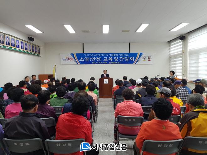 [¿µ±¤/½Ã»çÁ¾ÇսŹ®]³²Àç¿Á ±âÀÚ = ¿µ±¤±º ¿µ±¤À¾(À¾Àå ±èÁ¦»ó)¿¡¼´Â Áö³ 10¿ù 18ÀÏ À¾»ç¹«¼Ò ȸÀǽǿ¡¼ ³ëÀÎÀÏÀÚ¸®ÀÇ ¾ÈÀüÇÑ »ç¾÷ ÃßÁø°ú »ç¾÷¼º°úÀÇ ±Ø´ëȸ¦ À§ÇØ, ¡¸2017³â ³ëÀÎÀÏÀÚ¸® ¹× »çȸȰµ¿ Áö¿ø»ç¾÷ ¼Ò¾ç(¾ÈÀü)±³À° ¹× °£´ãȸ¡¹¸¦ °³ÃÖÇÏ¿´´Ù.
