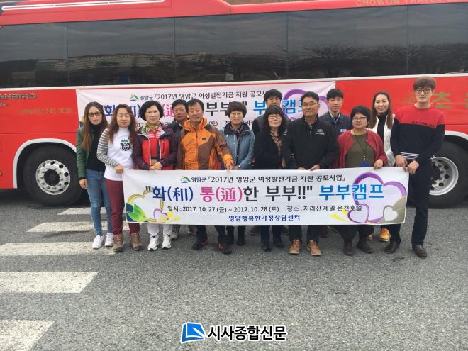 ¿µ¾Ï±º ¿©¼º¹ßÀü±â±ÝÀ¸·Î ½Ç½ÃµÇ´Â À̹ø ºÎºÎÄ·ÇÁ´Â ¡®È(ûú)Åë(÷×)ÇÑ ºÎºÎ - ¿ì¸® ºÎºÎÀÇ ¼ÒÁßÇÑ À̾߱⡯¶ó´Â ÁÖÁ¦¸¦ °¡Áö°í, ºÎºÎ°£ÀÇ ¼ÒÅë°ú ÈÇÕÀ» ¿øÇÏ´Â ºÎºÎ 10½ÖÀ» ¼±¹ßÇÏ¿© 1¹Ú 2ÀÏÀÇ ÀÏÁ¤À¸·Î Áö¸®»ê ÀÏ¿ø¿¡¼ ÁøÇàµÇ¾ú´Ù. Ⱦö»ç¿Í °î¼º ±âÂ÷¸¶À»ÀÇ Ã¼Çè ÇÁ·Î±×·¥°ú °¡Á·Çູ¿¬±¸¼Ò À̰æ¹Ì ¼ÒÀåÀÇ ¡®ºÎºÎÇູ ¼ö¾÷¡¯À̶ó´Â ÁÖÁ¦°¿¬À¸·Î ºÎºÎµéÀÇ Èú¸µ°ú Á¤¼Àû ±³°¨À» À§ÇÑ ÀåÀÌ ¸¶·ÃµÇ¾ú´Ù.