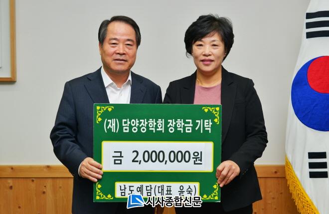 À±¼÷ ³²µµ¿¹´ã ´ëÇ¥´Â ¡®Á¦24ȸ ³²µµÀ½½Ä¹®ÈÅ«ÀÜÄ¡¡¯ ³²µµÀ½½Ä°æ¿¬´ëȸ¿¡¼ ¡®ÀϹݺΠ´ë»ó¡¯À» ¼ö»óÇÏ¸ç ¹ÞÀº »ó±Ý 200¸¸¿øÀ» ±âŹÇϸ硰¼ö»óÀÇ ¿µ¿¹¸¦ Áö¿ªÀÇ Áֹΰú ÇÔ²² ³ª´©°í ÇлýµéÀÇ ¹àÀº ¹Ì·¡¸¦ À§ÇØ Á¶±ÝÀ̳ª¸¶ µµ¿òÀÌ µÇ±â¸¦ ¹Ù¶ó´Â ¸¶À½À» ÀüÇÏ°í ½Í´Ù¡±¸ç ±âŹ¿¡ µ¿ÂüÇß´Ù.