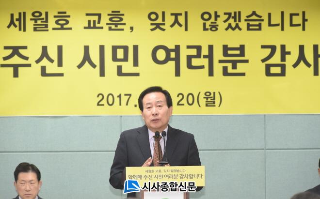 ¹Ú ½ÃÀåÀº ¼¼¿ùÈ£ ¼±Ã¼ »çÈÄ ¼ö½À ¹æ¾È¿¡ ´ëÇÑ Áú¹®¿¡´Â ¡°¿©·ÐÁ¶»ç¸¦ ½Ç½ÃÇØ ½Ã¹Î ÀǰßÀ» ûÃëÇϰí À̸¦ Á¤ºÎ¿Í ¼±Ã¼Á¶»çÀ§¿øÈ¸¿¡ Àü´ÞÇϰڴ١±°í ¹àÇû´Ù.
