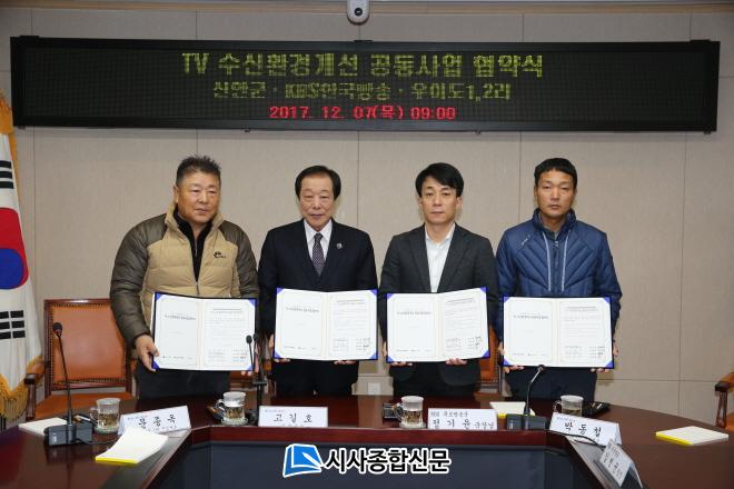 [½Å¾È/½Ã»çÁ¾ÇսŹ®]¹ÚµÎ¸¸ ±âÀÚ = ½Å¾È±º‧KBS‧¿ìÀ̵µ(1‧2¸®) ÁֹδëÇ¥ µîÀÌ Âü¼®ÇÏ¿© ¿ìÀ̵µ(1‧2¸®) Áö¿ªÀÇ TV ¼ö½Åȯ°æ °³¼±À» À§ÇØ 7ÀÏ(¸ñ)½Å¾È±ºÃ» ¿µ»óȸÀǽǿ¡¼ Çù¾àÀ» ü°áÇϰí, °øµ¿À¸·Î ÃßÁøÇÏ°Ô µÊ¿¡ µû¶ó ½Å¾È±ºÀº ¹°·Ð Áö¿ª ÁÖ¹ÎÀº »ç¾÷ÃßÁø¿¡ Àû±ØÀûÀ¸·Î Çù·Â ÇÏ°Ú´Ù°í ¸»Çß´Ù.