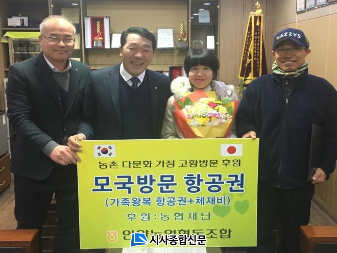 Áö³ 22ÀÏ ¾È¾ç³óÇù¿¡¼´Â ¾î·Á¿î ȯ°æ ¼Ó¿¡¼µµ ¿½ÉÈ÷ »ýȰÇϰí ÀÖ´Â ¿©¼º°áÈ¥À̹ÎÀÚ ºÎºÎ¿Í Àڳฦ ´ë»óÀ¸·Î ÀϺ» ¸ð±¹¹æ¹® ¿Õº¹Ç×°ø±Ç°ú üÀçºñ ¹× ¿©ÇàÀÚº¸Çè °¡ÀÔ µîÀ» Áö¿øÇß´Ù.