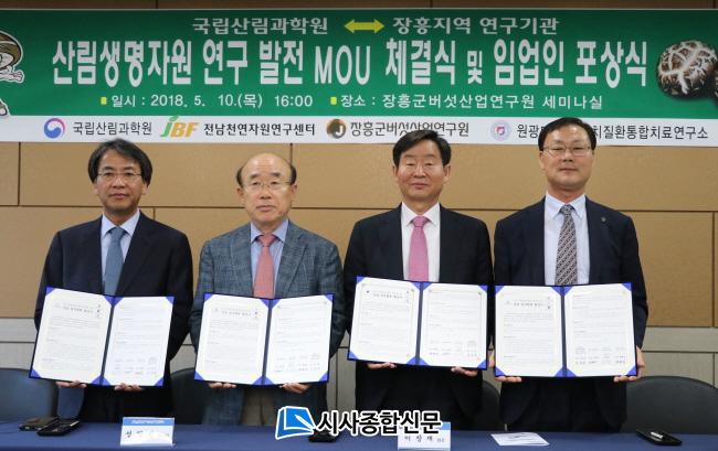 ÀåÈﱺ¹ö¼¸»ê¾÷¿¬±¸¿ø ¼¼¹Ì³ª½Ç¿¡¼ ¿¸° À̳¯ Çù¾à½Ä¿¡´Â ±¹¸³»ê¸²°úÇпø ÀÌâÀç ¿øÀå, ¹ÚÇö »ê¸²»ý¸íÀÚ¿ø¿¬±¸ºÎÀå, ±è¼¼Çö »ê¸²¼ÒµæÀÚ¿ø¿¬±¸°úÀå, ±è¸¸Á¶ »ê¸²¾à¿ëÀÚ¿ø¿¬±¸¼ÒÀå°ú Á¦ÇؽŠÀåÈﱺ¹ö¼¸»ç¾÷¿¬±¸¿øÀå, ¼º¶ô¼± õ¿¬ÀÚ¿ø¿¬±¸¼¾ÅÍÀå, ¼º°°æ ÀåÈïÅëÇÕÀÇ·áÇѹ溴¿øÀå µî °ü°èÀÚ 50¿©¸íÀÌ Âü¼®Çß´Ù.