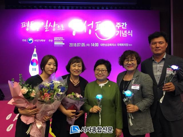 [ÀåÈï/½Ã»çÁ¾ÇսŹ®]ÀÌÁ¤¿¬ ±âÀÚ = Áö³ 7¿ù 5ÀÏ ´ëÇÑ»ó°øÈ¸ÀÇ¼Ò ±¹Á¦È¸ÀÇÀå¿¡¼ ¿¸° ¾ç¼ºÆòµîÁÖ°£ ±â³äÀÇ ³¯À» ¸Â¾Æ ÀåÈﱺ¿©¼º´ÜüÇùÀÇȸ È«Á¤´Ô ȸÀåÀÌ ¿©¼º°¡Á·ºÎÀå°ü»óÀ» ¹Þ¾Ò´Ù.