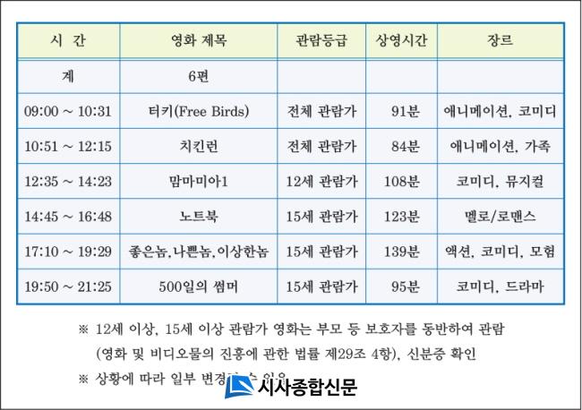 À̳¯Àº º¹³¯ ¸ÂÀÌ ¾Ö´Ï¸ÞÀÌ¼Ç <ÅÍŰ>¿Í Ãß¾ïÀÇ ¾Ö´Ï¸ÞÀÌ¼Ç <ġŲ·±>, ¹ÂÁöÄà <¸¾¸¶¹Ì¾Æ>, ±¹¿Ü¿µÈ <³ëÆ®ºÏ>°ú <500ÀÏÀÇ ½æ¸Ó>, °ü°´ 6¹é¸¸ ¸íÀ» µ¹ÆÄÇÑ <ÁÁÀº³ð³ª»Û³ðÀÌ»óÇѳð>À» ÇÏ·ç Á¾ÀÏ »ó¿µÇÒ ¿¹Á¤ÀÌ´Ù.