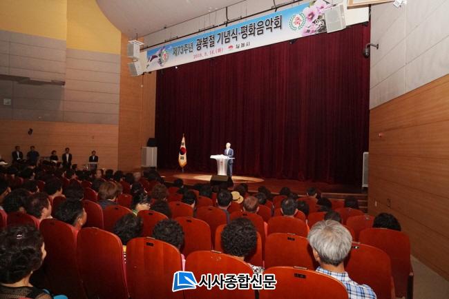 ÇÑÆí, ¹ÚÁØ¹è ±èÁ¦½ÃÀåÀº ¡°ÇöÀç ´ëÇѹα¹ÀÇ À§»óÀº ÀÚÁÖµ¶¸³À» À§ÇØ Èñ»ýÇϽмö¸¹Àº ¼ø±¹¼±¿°ú ¾Ö±¹Áö»çµéÀÇ Èñ»ýÀÌ ÀÖ¾ú±â¿¡ °¡´ÉÇßÀ¸¸ç, ±èÁ¦½Ã¹ÎÀÇ ¾Ö±¹½ÉÀ» ´Ù½Ã Çѹø Àϱú¿ì°í µ¶¸³ ¿îµ¿°¡µéÀÇ Èñ»ýÀ» ±â¸®±â À§ÇØ ±â³ä½Ä°ú °æÃàÀ½¾Çȸ¸¦ °³ÃÖÇÏ°Ô µÇ¾ú´Ù¡±
