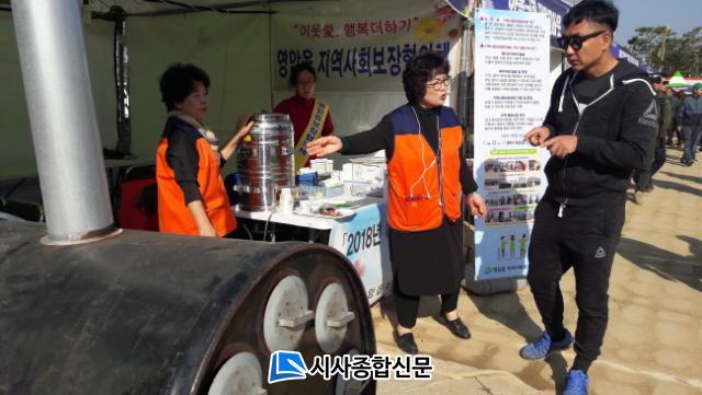 ¿µ¾ÏÀ¾ Áö¿ª»çȸº¸ÀåÇùÀÇü(ÀÌÇÏ ¿µ¾ÏÀ¾ ÇùÀÇü) À§¿øµéÀº ¿ùÃâ»ê ±¹ÈÃàÁ¦ÀåÀ» ã´Â °ü±¤°´µé°ú Áö¿ª Áֹε鿡°Ô Áö¿ª Ư»êǰÀΠȲÅä °í±¸¸¶¸¦ Á÷Á¢ ȷο¡ ±¸¿î ±º°í±¸¸¶¸¦ Àü´ÞÇÏ¸ç ¿¬ÇÕ¸ð±ÝȰµ¿À» Àü°³Çϰí ÀÖ´Ù.