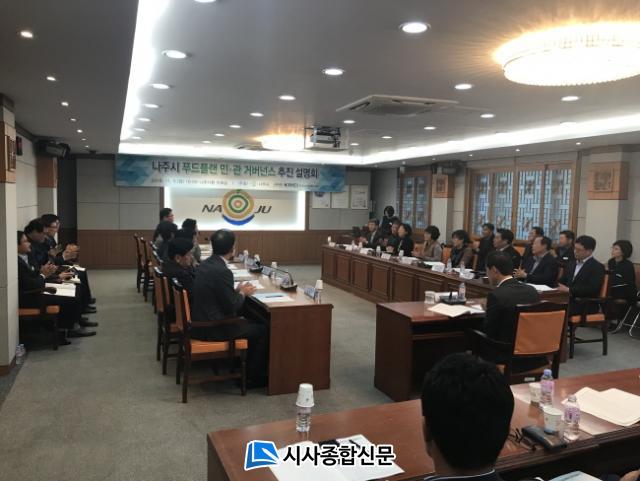 ³ªÁֽà ǪµåÇ÷£¿¡ ´ëÇÑ ¹Î¡¤°ü °Å¹ö³Í½º Ȱ¼ºÈ¸¦ À§ÇØ ¸¶·ÃµÈ À̳¯ ȸÀÇ¿¡´Â À§±¤È¯ ºÎ½ÃÀå, ÀÌ»óÁø ³óÇùÁß¾Óȸ ³ªÁÖ½ÃÁöºÎÀå, ¾È¿µÇö ³ªÁֽóó¾î¾÷ȸÀÇ¼Ò È¸Àå, ÀÓ¿¬È ·ÎÄÃǪµå »ý»êÀÚȸÀå µî °ü³» ³ó¾÷ºÐ¾ß ±â°ü¡¤»çȸ´Üü ´ëÇ¥, °ü°èÀÚ 50¿©¸íÀÌ Âü¼®ÇØ ¸Ó¸®¸¦ ¸Â´ò´Ù.