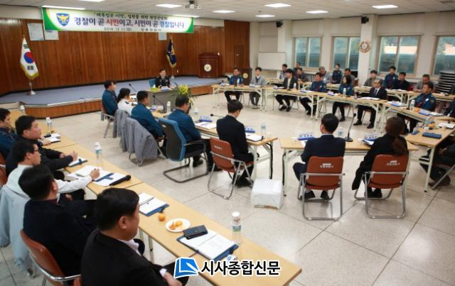 [ÀåÈï/½Ã»çÁ¾ÇսŹ®]ÀÌÁ¤¿¬ ±âÀÚ = Àü³²°æÂûû(ûÀå ÃÖ°üÈ£)Àº 11ÀÏ ÀåÈï°æÂû¼ 3Ãþ õ°ü¸¶·ç¿¡¼ ÃÖ°üÈ£ Àü³²Ã»Àå, ¹ÚÁؼº ÀåÈï¼Àå, °¢ ºÎ¼ Á÷¿øÀÌ Âü¼®ÇÑ °¡¿îµ¥ ¡®Á¦º¹ ÀÔÀº ½Ã¹ÎÀ¸·Î¼ÀÇ °æÂûÁ¤½Å ±¸Çö¡¯À̶ó´Â ÁÖÁ¦·Î Ä¡¾ÈÇöÀå °£´ãȸ¸¦ °³ÃÖÇß´Ù.
