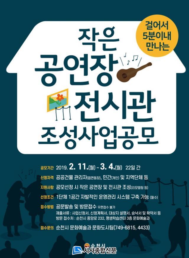 ¼øÃµ½Ã´Â ½Ã¹Î ÀÏ»óÀÇ »î¼Ó¿¡¼ ¹®È¿¹¼úÀ» ´©¸®´Â ¡®´õ ÇູÇÑ ¹®Èµµ½Ã¡¯Á¶¼ºÀ» À§ÇØ 2¿ù 11ÀÏ ~ 3¿ù 4ÀϱîÁö ÀÛÀº °ø¿¬À塤Àü½Ã°ü Á¶¼º »ç¾÷ ´ë»óÁö ¼±Á¤À» À§ÇÑ °ø¸ð¸¦ ÁøÇàÇÑ´Ù.