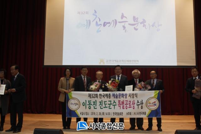 À̵¿Áø Áøµµ±º¼ö´Â º» ½Ã»ó½Ä¿¡¼ ¿¹¼úÀε鿡 ´ëÇÑ °Ý·Á»ç¿Í ÇÔ²² ¡°Æ¯º°°ø·Î»ó ¼ö»óÀº ´ëÇѹα¹ ÃÖÃÊ ¹Î¼Ó¹®È¿¹¼úƯ±¸ÀÎ Áøµµ±ºÀÇ Àںνɰú Ã¥¹«¸¦ ´Ù½Ã±Ý »ó±âÇÏ´Â °è±â·Î »ï¾Æ ¿¹¼úºÐ¾ß¸¦ Áö¼ÓÀûÀ¸·Î ¹ßÀü ½ÃÄÑ ³ª°¡°Ú´Ù¡±°í ¸»Çß´Ù.