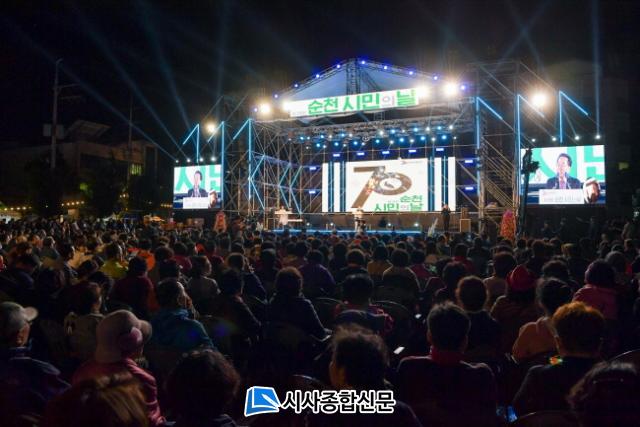 ÃàÇÏ °ø¿¬À¸·Î ÀαⰡ¼ö ¹éÁö¿µ, ¹Ì½ºÆ®·Ô ±è³ªÈñ, ¼øÃµÈ«º¸´ë»ç Ãß°¡¿ÀÌ ¹«´ë¸¦ ´õ¿í ¶ß°Ì°Ô ´Þ±¸¾úÀ¸¸ç ½Ã ½Â°Ý 70ÁÖ³âÀ» »ó¡ÇÏ´Â ºÒ²É ¾ÆÆ®¼î·Î ¸¶¹«¸® Çß´Ù. °ø½ÄÇà»ç À̿ܿ¡µµ ½Ãû ÁÖº¯¿¡´Â À¾¸éµ¿ ´ëÇ¥ À½½Ä, üÇè, ÆÇ¸Å, È«º¸ºÎ½º ¿î¿µ°ú ÇÔ²² ±æ°Å¸® °ø¿¬, ½Ã¹Î ÀÚÀ¯¹ß¾ð´ë, »çȸÀû °æÁ¦´ÜüÀÇ ÇÁ¸®¸¶ÄÏ, ¾î¸°À̸¦ À§ÇÑ VR üÇèÁ¸ µî ³Àå³îÀÌÅÍ, ¼øÃµ¿ª»ç »çÁøÀü, ¼øÃµÀÇ ÃÖÃÊ¡¤ÃÖ°í Àü½ÃÀü µîÀ» °¡¹ÌÇØ¼ ½Ã¹Îµé¿¡°Ô Áñ°Å¿òÀ» ´õÇß´Ù.