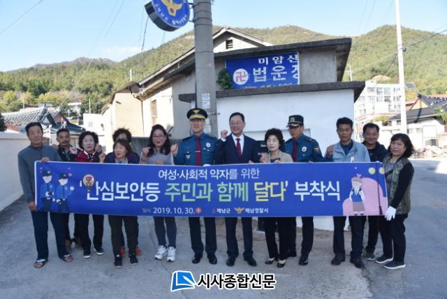 [½Ã»çÁ¾ÇսŹ® = ÀÌÁ¤¿¬ ±âÀÚ] ÇØ³²°æÂû¼(¼Àå ÁøÈñ¼·)´Â Áö³ 10¿ù 30ÀÏ, Áö¿ªÁֹΰú ÇÔ²² ¾È½Éº¸¾Èµî ´Ù´Â Çà»ç¸¦ °³ÃÖÇß´Ù. À̳¯ Çà»ç´Â ÁøÈñ¼· °æÂû¼Àå°ú ¸íÇö°ü ÇØ³²±º¼ö, ÀαÙÁֹΠµî 50¿©¸íÀÌ Âü¼®ÇÑ °¡¿îµ¥, Æò¼Ò ÁֹεéÀÇ ºÒ¾È°¨ÀÌ ³ô¾Ò´ø ¼ö¼º¸® ÀÏ´ë °ñ¸ñ±æ¿¡ ž籤LED ¼¾¼¶óÀÌÆ®¸¦ ¼³Ä¡ÇÏ¿´´Ù.