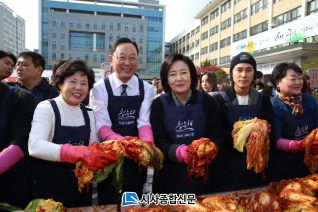 ÀڸŰῬ Çù¾à½Ä ÈÄ¿¡´Â ±¸·Î±¸Ã» ±¤Àå¿¡¼ ¹Ú¿µ¼± Áß¼Òº¥Ã³±â¾÷ºÎ Àå°ü°ú ¼ÕÇöÁÖ, Á¤Å¿ì, ¾çµ¿±Ù, À¯¼±¾¾ µî ¿µÈ¹è¿ì, Áö¿ª ¿©¼º´Üü ȸ¿ø µîÀÌ Âü¿©ÇÑ °¡¿îµ¥ Á¦3ȸ ¿µÈÀÎ »ç¶ûÀÇ ±èÄ¡³ª´©¹Ì Çà»ç°¡ ¿·È´Ù. ±èÄ¡³ª´©¹Ì Çà»ç¿¡ ¾²ÀÎ ÀýÀÓ¹èÃß¿Í ¾ç³ä µîÀº Àü·® ÇØ³²¿¡¼ °ø±ÞµÆÀ¸¸ç, ¸¸µé¾îÁø ±èÄ¡ 1,500¹Ú½º(5kg)´Â ±¸·Î±¸³» Àú¼ÒµæÃþ°ú »çȸº¹Áö ´Üü µî¿¡ Àü´ÞµÆ´Ù.