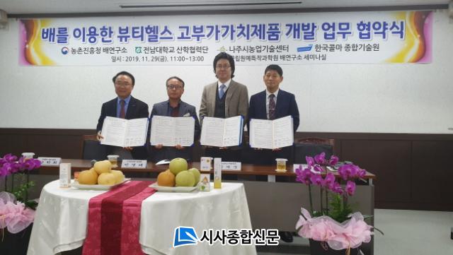 ³ªÁֽà ³ó¾÷±â¼ú¼¾ÅÍ´Â 29ÀÏ ³óÃÌÁøÈïû ±¹¸³¿ø¿¹Æ¯ÀÛ°úÇпø ¹è¿¬±¸¼Ò(¼ÒÀå °»ï¼®), Àü³²´ëÇб³ »êÇÐÇù·Â´Ü(´ÜÀå ±èÀç±¹), ¢ßÇѱ¹Äݸ¶(¿øÀå °ÇÐÈñ)¿Í ¡®³ªÁÖ ¹è Ȱ¿ë Á¦Ç° °³¹ßÀ» À§ÇÑ ¾÷¹«Çù·ÂÇù¾à(MOU)¡¯À» ü°áÇß´Ù°í ¹àÇû´Ù.
