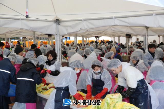 ÇØ³²±ºÀº 7ÀÏ ¼¿ï ºÀÀº»ç¿¡¼ ÇØ³² ÀýÀÓ¹èÃß ÆÇÃË ±èÀå ¸¸µé±â ¹× »ç¶ûÀÇ ±èÄ¡³ª´®Çà»ç¸¦ °¡Á³´Ù. Çà»ç¿¡ »ç¿ëµÈ ÀýÀÓ¹èÃß 7,000Æ÷±â¿Í ¾ç³äÀº Àü·® ÇØ³²»êÀ¸·Î °ø±ÞµÆÀ¸¸ç, ÇØ³²±º °ü°èÀÚ ¹× Çâ¿ì¸¦ ºñ·ÔÇØ ºÀÀº»ç ¿ø¸í ÁÖÁö ½º´Ô°ú ½ÅµµµéÀÌ Âü¿©ÇØ ±èÄ¡ ´ã±×±â°¡ ÁøÇàµÆ´Ù.