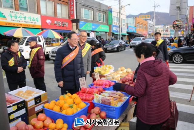 ´ë¸ñÀåÀ» ¸ÂÀº ÇØ³²À¾ ¿ÀÀϽÃÀåÀ» ãÀº ¸í±º¼ö´Â ¼³¸ÂÀÌ ¹°Ç°À» Á÷Á¢ »ç¸ç »óÀεéÀÇ ÀǰßÀ» ûÃëÇÏ´Â ½Ã°£À» °¡Á³´Ù. ƯÈ÷ À庸±â¿¡ ³ª¼± ÁֹεéÀ» ´ë»óÀ¸·Î Áö¿ª ¼Ò»ó°øÀεéÀÇ ¸ÅÃâ Áõ°¡¿¡ Å« µµ¿òÀÌ µÇ°í ÀÖ´Â ÇØ³²»ç¶û»óǰ±ÇÀ» Àû±Ø Ȱ¿ëÇØ ÁÙ °ÍÀ» ¾Ë¸®´Â Ä·ÆäÀÎÀ» ÆîÃÆ´Ù.