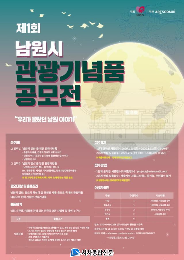 ÀÌ·¯ÇÑ °ü±¤ÀÚ¿øÀ» ¹ÙÅÁÀ¸·Î ´ëÇ¥ »ó¡ ÄÜÅÙÃ÷¸¦ Á¢¸ñÇÑ Æ®·»µå¿¡ ¸Â´Â ½Ç¿ëÀûÀÎ °ü±¤±â³äǰÀ» °³¹ßÇϰíÀÚ Áö³ 2019³â 11¿ùºÎÅÍ ³²¿ø½Ã °ü±¤±â³äǰ °³¹ß ¿ë¿ªÀ» ÃßÁøÇϰí ÀÖ´Ù. ±× »ç¾÷ÀÇ ÀÏȯÀ¸·Î 2020³â 1¿ù 10ºÎÅÍ 31ÀϱîÁö ´Ù¾çÇÑ Ã¢ÀÛÀÌ ´ã±ä °ü±¤±â³äǰÀ» °³¹ß¡¤À°¼ºÇϰíÀÚ¡®Á¦1ȸ ³²¿ø½Ã °ü±¤±â³äǰ °ø¸ðÀü¡¯À» °³ÃÖÇÑ´Ù.