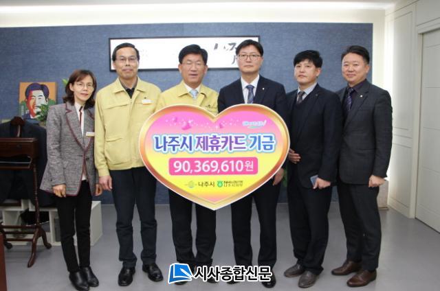 [½Ã»çÁ¾ÇսŹ® = À¯µ¿±¹ ±âÀÚ] ³ªÁÖ½Ã(½ÃÀå °ÀαÔ)´Â NH³óÇùÀºÇà ³ªÁÖ½ÃÁöºÎ(ÁöºÎÀå ¹Ú³»Ãá)¿¡¼ 2019³âµµ ³ªÁֽà Á¦ÈÞÄ«µå Àû¸³±â±Ý 9039¸¸¿øÀ» Àü´ÞÇØ¿Ô´Ù°í 4ÀÏ ¹àÇû´Ù.