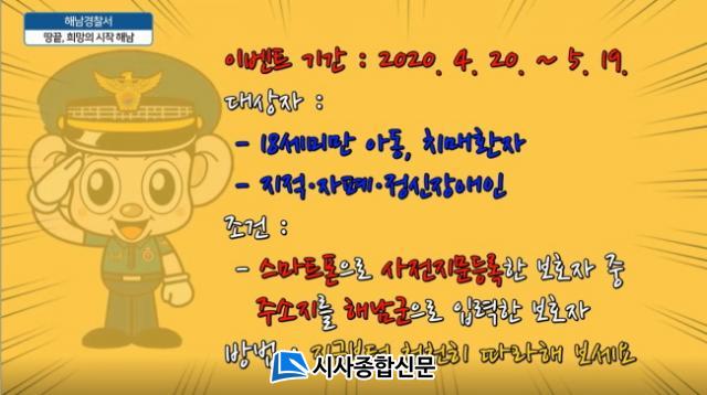 ½º¸¶Æ®Æù ¡®¾ÈÀüµå¸²¡¯ ¾Û ÀÌ¿ëÇÏ¿© ÀÚ°¡¿¡¼ Áö¹® µîÀ» Á÷Á¢ µî·ÏÇÏ´Â ¹æ¹ýÀ¸·Î, ´©±¸³ª ¼Õ½±°Ô µû¶ó ÇÒ ¼ö ÀÖµµ·Ï ÀÚü Á¦ÀÛÇÑ µ¿¿µ»óÀ» ÇØ³²±º ¸¾Ä«Æä¿¡ °øÁöÇÏ¿´°í ¾î¸°ÀÌÁý°ú ÇØ³²±º ¼Ò½ÄÁö¿¡µµ ¾È³»¹®À» °ÔÀçÇÏ¿´À¸¸ç, Âü¿© Ȱ¼ºÈ¸¦ À§ÇØ ÁÖ¼ÒÁö¸¦ ÇØ³²±ºÀ¸·Î ÀÔ·ÂÇÑ µî·ÏÀÚÀÇ º¸È£ÀÚ¿¡ ´ëÇØ¼´Â ¸ÅÁÖ 1ȸ ÃßõÇÏ¿© ÇÊÅë µî È«º¸¹°Ç°À» ÁõÁ¤ÇÏ´Â À̺¥Æ®µµ ½Ç½ÃÇÑ´Ù.