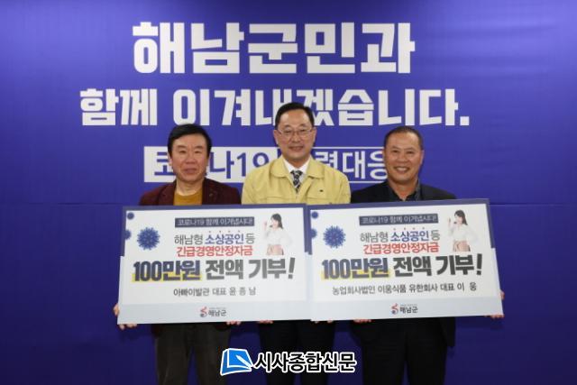 ÇØ³²±º ¾ÆºüÀ̹߰ü À±Á¾³² ´ëÇ¥¿Í ÀÌ¿õ½Äǰ ´ëÇ¥ ÀÌ¿õ¾¾´Â 22ÀÏ ÇØ³²±º¿¡¼ Áö±Þ¹ÞÀº ±ä±Þ°æ¿µ¾ÈÁ¤ÀÚ±Ý °¢ 100¸¸¿ø¾¿À» ±âºÎÇß´Ù.
