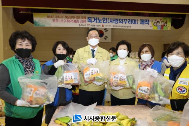 ÇØ³²±ºÀº 23ÀÏ °ü³» µ¶°Å³ëÀÎ µî Ãë¾à°èÃþ ¾î¸£½Å 4,278¸í¿¡°Ô ¶ó¸é°ú ¿ä°ÅÆ®, °è¶õ µî ½Ä·áǰÀÌ ´ã±ä ²Ù·¯¹Ì¸¦ ¹è´ÞÇß´Ù.