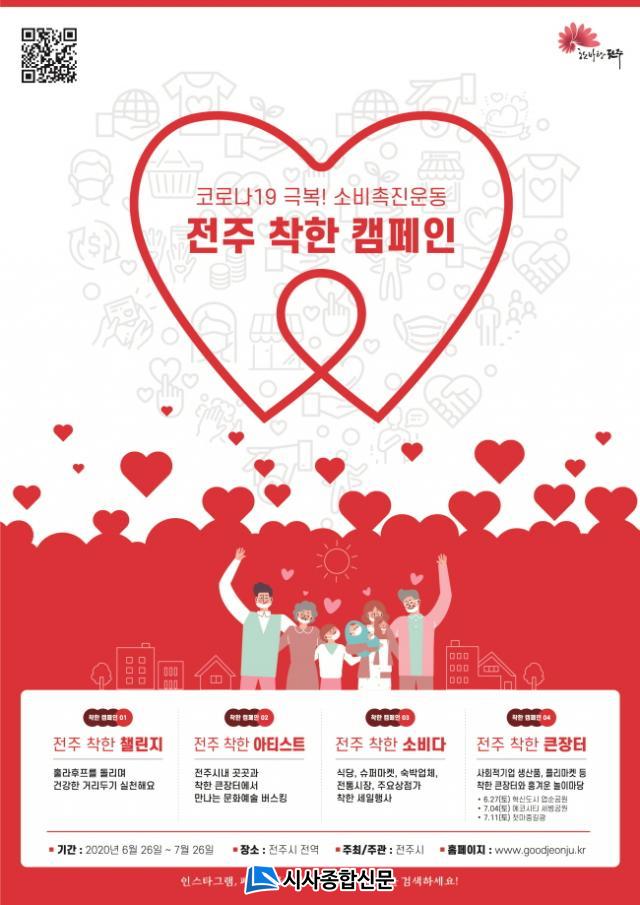 ÀüÁֽô 10ÀϺÎÅÍ ´ÙÀ½ ´Þ 26ÀϱîÁö ÃÑ 6ÁÖ µ¿¾È Äڷγª19 À§±â¸¦ ½Ã¹Îµé°ú ÇÔ²² ±Øº¹Çϰí ÀÀ¿øÇϱâ À§ÇØ ´Ù¾çÇÑ ¼ÒºñÃËÁø ¿îµ¿À» Àü°³ÇÏ´Â ¡®2020 ÀüÁÖÂøÇÑÄ·ÆäÀΡ¯À» ½Ç½ÃÇÑ´Ù.