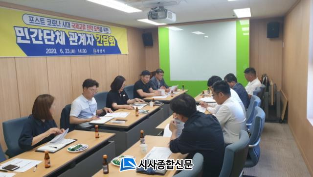 À̹ø °£´ãȸ´Â Áö¿ª ³» °æÁ¦¡¤¹®È¡¤¿¹¼ú¡¤½ºÆ÷Ã÷¡¤»çȸ´Üü ºÐ¾ßº° ¹Î°£´Üü °ü°èÀÚ µî 12¸íÀÌ Âü¼®ÇÑ °¡¿îµ¥ °æÁ¦, ¹®È¿¹¼ú µî ´Ù¾çÇÑ ºÐ¾ß¿¡¼ °ü ÁÖµµÀÇ ±¹Á¦±³·ù¿¡¼ ¹þ¾î³ª ¹Î°£´ÜüÀÇ ±¹Á¦±³·ù ¼ö¿ä¿¡ ´ëóÇÏ°í Æ÷½ºÆ® Äڷγª ½Ã´ë¿¡ ´Éµ¿ÀûÀ¸·Î ´ëÀÀÇϱâ À§ÇÑ ±¹Á¦È Àü·«À» ¸ð»öÇϱâ À§ÇØ ¸¶·ÃµÆ´Ù.