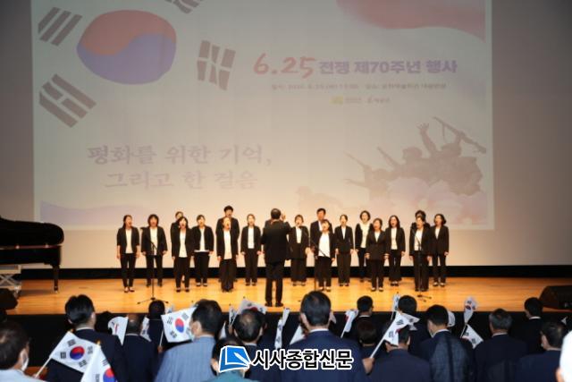 Àü³²µµ¸³±¹¾Ç´ÜÀÇ À§·Î°ø¿¬°ú 6.25ÀüÀï ¿µ»ó¹° »ó¿µ, 6.25³ë·¡¿Í Àü¿ì°¡°¡ Á¦Ã¢µÈ °¡¿îµ¥ ³ª¶ó¸¦ À§ÇØ Èñ»ýÇÑ ÂüÀü¿ë»çÀÇ ¸í¿¹¼±¾ç°ú ³ë°í¿¡ °¨»çÇÏ´Â ÀÚ¸®°¡ ÁøÇàµÆ´Ù.