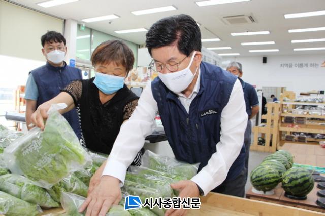 À̳¯ ¿ÀÀü 7½Ã 30ºÐ²² ° ½ÃÀåÀº ·ÎÄÃǪµåÁ÷¸ÅÀå ºû°¡¶÷Á¡À» ¹æ¹®ÇØ ¸ÅÀå Á÷¿ø, ³ó¾÷Àεé°ú ÇÔ²² »óÃß¡¤¹æ¿ïÅ丶Åä µî ³ó»ê¹° Æ÷Àå, Áø¿ ÀÛ¾÷¿¡ Âü¿©Çß´Ù.