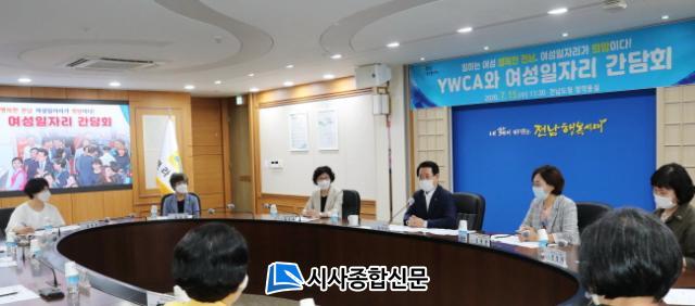À̳¯ Àü³²µµÃ» Á¤¾à¿ë½Ç¿¡¼ °¡Áø °£´ãȸ¿¡´Â ¸ñÆ÷¡¤¿©¼ö¡¤¼øÃµ¡¤±¤¾ç YWCAȸÀå°ú »ç¹«ÃÑÀå, ¿©¼ºÀη°³¹ß¼¾ÅÍÀå µîÀÌ ÇÔ²²Çß´Ù. ±è Áö»ç´Â ¿©¼ºÀÏÀÚ¸® »ç¾÷ ÃßÁø»óȲ°ú ¾Ö·Î»çÇ×À» µè°í, ¾çÁúÀÇ ¿©¼ºÀÏÀÚ¸®»ç¾÷ ¹ß±¼À» À§ÇØ Âü¼®ÀÚµé°ú ÇÔ²² ¿¶í ³íÀǸ¦ ÆîÃÆ´Ù.