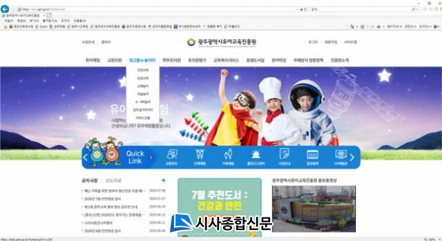 ±¤ÁÖÀ¯¾Æ±³À°ÁøÈï¿øÀº ±âÁ¸ À¯Ä¡¿ø ÇöÀå°ú °¡Á¤¿¡¼ ¿Â¶óÀλó Ȱ¿ëÇÒ ¼ö ÀÖ´Â ¡®ÁýÄÛ ³îÀ̲ٷ¯¹Ì¡¯, ¡®Ã£¾Æ°¡´Â À̾߱⠼±¹°¡¯, ¡®ºû°íÀ» e-³îÀÌÅÍ¡¯¸¦ ȨÆäÀÌÁö¸¦ ÅëÇØ ¿î¿µÇØ ¿Ô´Ù.