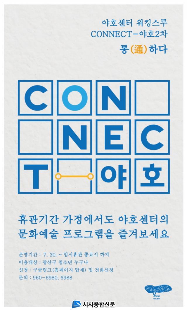 ¡®CONNECT-¾ßÈ£ Åë(÷×)ÇÏ´Ù¡¯·Î ¸í¸íµÈ À̹ø ÇÁ·Î±×·¥Àº, Áö³ 3¿ù¿¡ ÀÌÀº 2Â÷ Çà»ç. Äڷγª19ÀÇ Áö¿ª»çȸ Àç È®»êÀ¸·Î ¾ßÈ£¼¾ÅͰ¡ ÀÓ½ÃÈÞ°ü¿¡ µé¾î°¨¿¡ µû¶ó û¼Ò³âµéÀÇ ½É¸®Àû ºÒ¾È ÇØ¼Ò¿Í ¼ÒÅëÀ» À§ÇØ ¸¶·ÃµÆ´Ù.