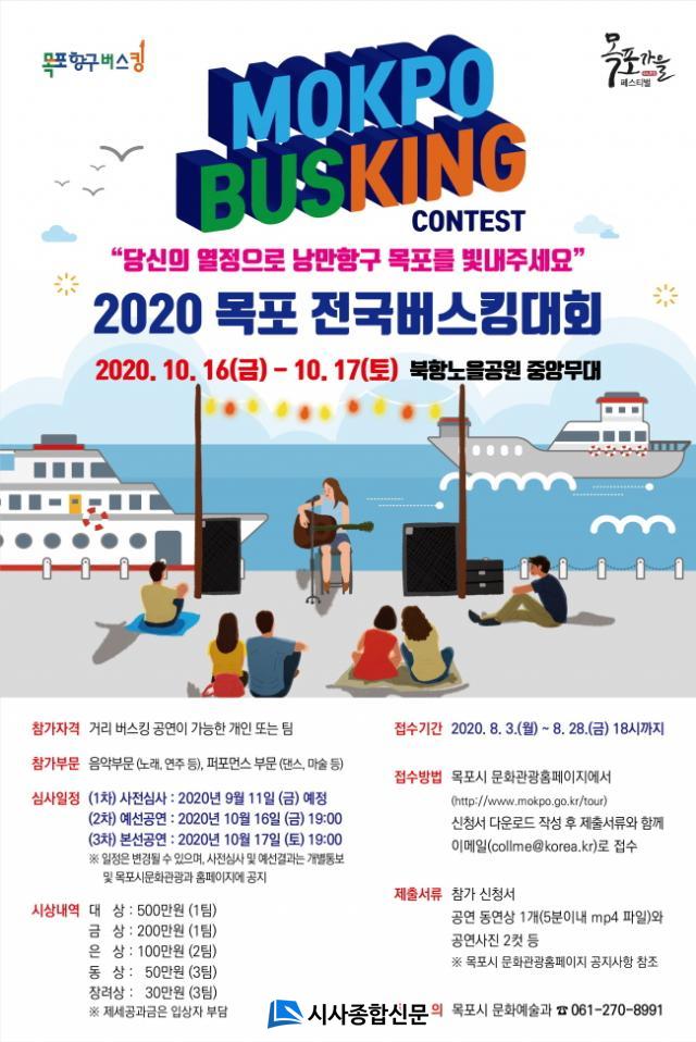 Âü°¡ ½ÅûÀº 8¿ù 28ÀϱîÁö À̸ÞÀÏ(collme@korea.kr)·Î Á¢¼ö¹Þ´Â´Ù. ¸ñÆ÷½Ã ¹®È°ü±¤È¨ÆäÀÌÁö(http://www.mokpo.go.kr/tour)¿¡¼ ½Åû¼¸¦ ´Ù¿î¹Þ¾Æ ÀÛ¼ºÇØ °ø¿¬ µ¿¿µ»ó°ú ÇÔ²² º¸³»¸é µÈ´Ù.