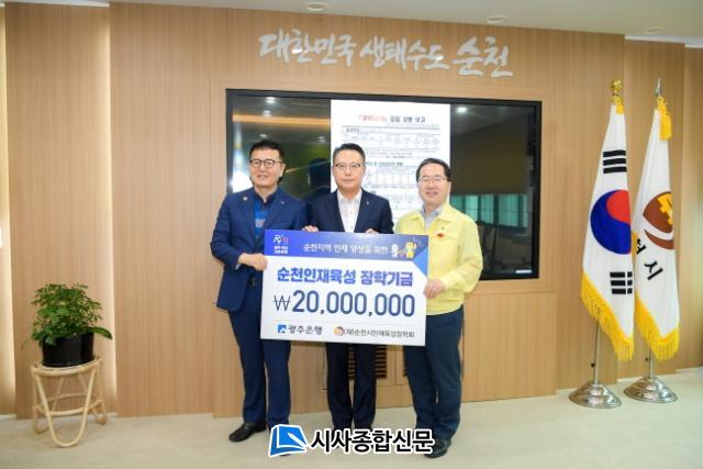 ¼øÃµ½Ã´Â 11ÀÏ Àü´Þ½ÄÀ» °®°í, ¢ß±¤ÁÖÀºÇàÀÌ 2õ¸¸¿ø, îñ¼øÃµ¹®È¿øÀå ¼°Å¿ø¾¾°¡ 1õ¸¸¿øÀÇ ÈÄ¿ø±ÝÀ» ¼øÃµ½Ã ÀÎÀçÀ°¼ºÀåÇÐȸ ÀÌ»çÀåÀÎ Çã¼® ¼øÃµ½ÃÀå¿¡°Ô Àü´ÞÇß´Ù. ¶Ç ȲÀοë½Å°æ°ú ȲÀÎ¿ë ¿øÀåµµ À̳¯ Àü´Þ½Ä¿¡´Â Âü¼®ÇÏÁö ¸øÇßÁö¸¸ 1õ¸¸¿øÀ» ÀåÇбâ±ÝÀ¸·Î ÈÄ¿øÇß´Ù.