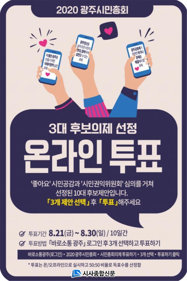 10´ë ¿¹ºñÀÇÁ¦´Â À̹ø ¿Â¡¤¿ÀÇÁ¶óÀÎ ½Ã¹ÎÅõÇ¥¸¦ °ÅÃÄ 3´ë Èĺ¸ÀÇÁ¦·Î ¼±Á¤µÇ¸ç, ¿À´Â 9¿ù12ÀÏ ¿¸± ¿¹Á¤ÀÎ 2020 ±¤ÁֽùÎÃÑȸ¡¯¿¡¼ ½Ã¹ÎÀÇ ¼÷ÀÇ¿Í Åä·Ð, ÅõÇ¥¸¦ ÅëÇØ ¡®±¤ÁÖ°øµ¿Ã¼ ½ÇõÀ» À§ÇÑ ÃÖÁ¾ÀÇÁ¦¡¯·Î ¼±Á¤µÈ´Ù.