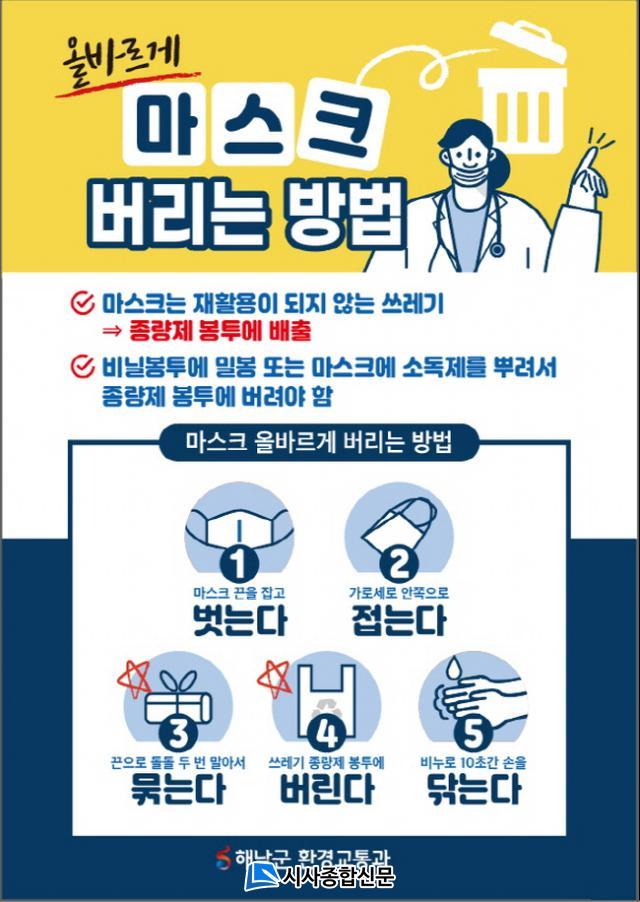 ÇÑÆí, ÇØ³²±º ´ã´çÀÚ´Â ¡°³»°¡ »ç¿ëÇß´ø ¸¶½ºÅ©¸¦ ¿Ã¹Ù¸£°Ô ¹ö¸®´Â °ÍÀº ³²À» À§ÇÑ ¹è·ÁÀÌÀÚ È¯°æÀ» ÁöŰ´Â ±âº»À̶ó¸ç, Æó¸¶½ºÅ©´Â ¿À¿°¹°ÁúÀÌ ¼Õ¿¡ ¹¯Áö ¾Êµµ·Ï Àß ¹¾î ¹Ýµå½Ã ÀϹݾ²·¹±â·Î ¹èÃâÇØ ÁÖ±æ ¹Ù¶õ´Ù¡±°í ¸»Çß´Ù.