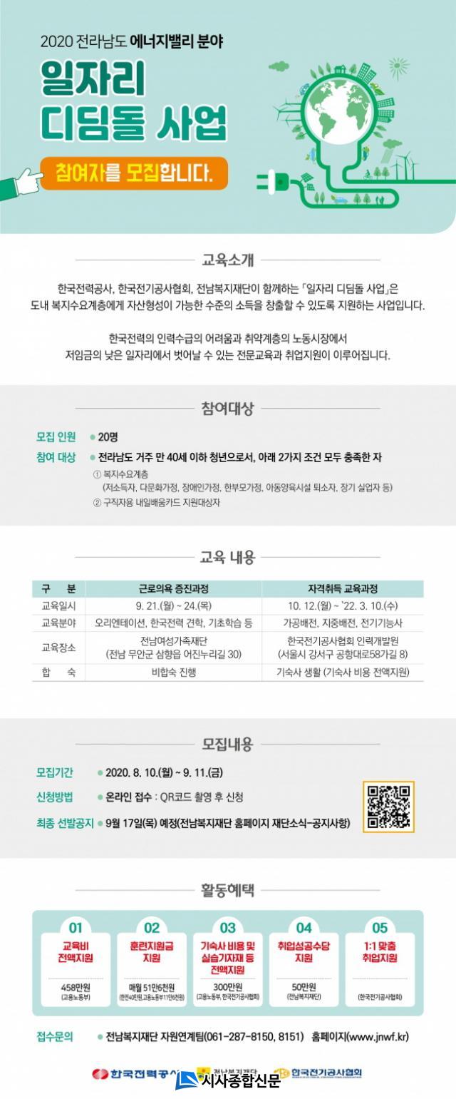 Àü³²º¹ÁöÀç´ÜÀº Çѱ¹Àü·Â°ø»ç, Çѱ¹Àü±â°ø»çÇùȸ¿Í ÃÖ±Ù ¾÷¹«Çù¾àÀ» ¸Î°í Ãë¾à°èÃþÀ» ´ë»óÀ¸·Î ¹èÀü ±â´ÉÀη ¾ç¼º ±³À°°úÁ¤ÀÎ ¡®ÀÏÀÚ¸® µðµõµ¹ »ç¾÷¡¯ ½ÅûÀ» ´ÙÀ½´Þ 11ÀϱîÁö ¹Þ´Â´Ù°í ¹àÇû´Ù.