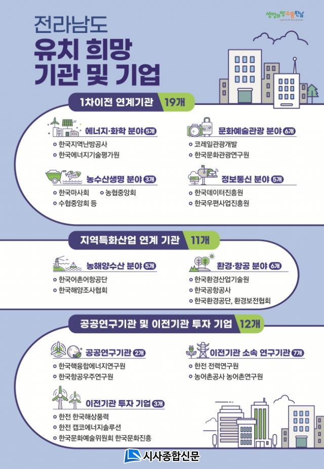 ¾ÕÀ¸·Î Àü¶ó³²µµ´Â 1Â÷ ÀÌÀü °ø°ø±â°ü°ú ¿¬°èÇØ Àü³²ÀÇ »õ·Î¿î ¹ßÀü±âȸ¸¦ ¸¸µé 19°³ ±â°üÀ¸·Î ¡ãÇѱ¹Áö¿ª³¹æ°ø»ç, Çѱ¹¿¡³ÊÁö±â¼úÆò°¡¿ø µî ¿¡³ÊÁö․ÈÇÐ ºÐ¾ß 5°³ ±â°ü ¡ãÇѱ¹¸¶»çȸ, ³óÇùÁß¾Óȸ, ¼öÇùÁß¾Óȸ µî ³ó¼ö»ê»ý¸í ºÐ¾ß 3°³ ±â°ü ¡ãÄÚ·¹Àϰü±¤°³¹ß, Çѱ¹¹®È°ü±¤¿¬±¸¿ø µî ¹®È¿¹¼ú°ü±¤ºÐ¾ß 6°³ ±â°ü ¡ãÇѱ¹µ¥ÀÌÅÍÁøÈï¿ø, Çѱ¹¿ìÆí»ç¾÷ÁøÈï¿ø µî Á¤º¸Åë½Å ºÐ¾ß 5°³ ±â°üÀ» À¯Ä¡ÇÒ °èȹÀÌ´Ù.