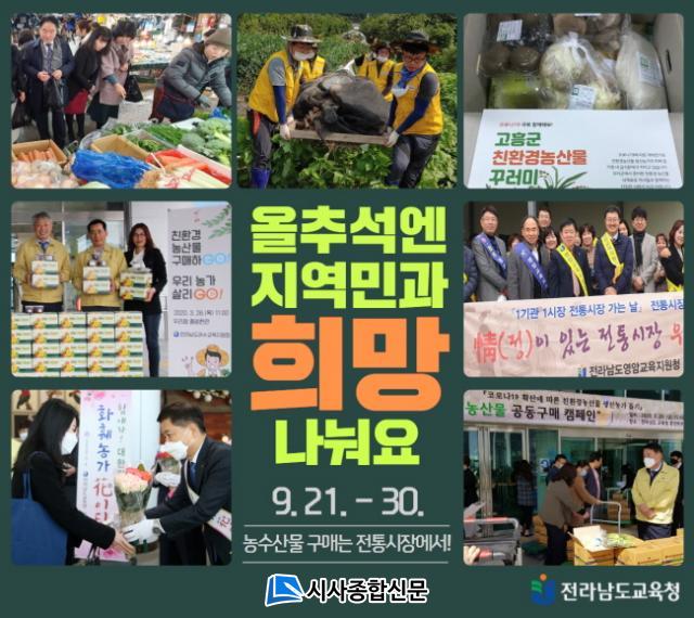 Àü³²µµ±³À°Ã»Àº ¹ÎÁ· ÃÖ´ëÀÇ ¸íÀýÀÎ Ãß¼®À» ¾ÕµÎ°í 9¿ù 21ÀÏ(¿ù)ºÎÅÍ 29ÀÏ(È)±îÁö º»Ã» ¹× ½Ã¡¤±º ±³À°Áö¿øÃ», »êÇϱâ°ü, °¢ ±Þ Çб³ ±³Á÷¿øµéÀ» ´ë»óÀ¸·Î ÀüÅë½ÃÀå ³ó»ê¹° ±¸¸Å Ä·ÆäÀÎÀ» ¹úÀδÙ.