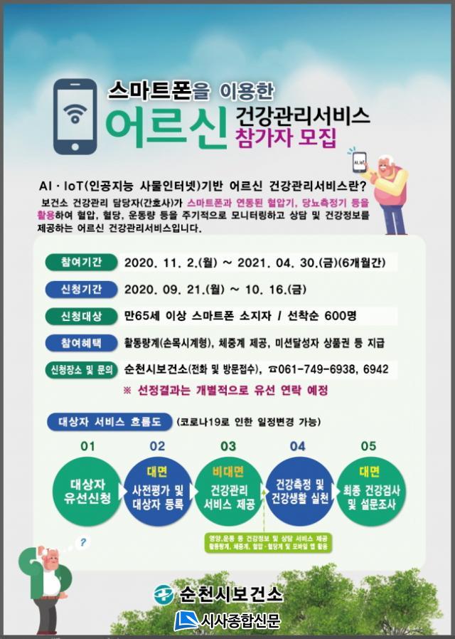 ÇÑÆí, ¼øÃµ½Ã º¸°Ç¼Ò °ü°èÀÚ´Â ¡°¾î¸£½ÅµéÀÌ ºñ´ë¸é ¹æ½ÄÀÇ µð¹ÙÀ̽º Ȱ¿ëÀ» ÅëÇØ Á¤±âÀûÀ¸·Î Ç÷¾Ð¡¤Ç÷´ç µîÀ» ÃøÁ¤ÇÔ°ú µ¿½Ã¿¡ Àü¹®°¡ÀÇ µµ¿òÀ» ¹Þ¾Æ°¡¸ç ¸¸¼ºÁúȯÀ» ºñ·ÔÇØ °Ç°ÇàŸ¦ °³¼±ÇØ ÇູÇϰí ǰÀ§ÀÖ´Â ³ëÈÄ »ýȰÀ» ¿µÀ§ÇØ ³ª°¥ ¼ö ÀÖµµ·Ï »ç¾÷ÃßÁø¿¡ ÃÖ¼±À» ´ÙÇϰڴÙ.¡±°í ¸»Çß´Ù.