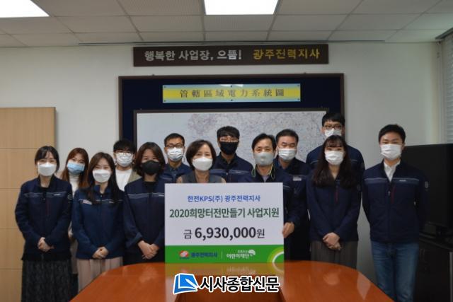 [½Ã»çÁ¾ÇսŹ® = ¿À½ÂÅà ±âÀÚ] ÃÊ·Ï¿ì»ê¾î¸°ÀÌÀç´Ü ±¤ÁÖÁö¿ªº»ºÎ(º»ºÎÀå ±èÀº¿µ)´Â ÇÑÀüKPS(ÁÖ)±¤ÁÖÀü·ÂÁö»ç(Áö»çÀå ±¸È¸°ï)·Î ºÎÅÍ µµ¿òÀÌ ÇÊ¿äÇÑ ±¤ÁÖÁö¿ª ¾Æµ¿µéÀÇ ÁÖ°Åȯ°æ°³¼±À» À§ÇÑ 2020 Èñ¸ÁÅÍÀü¸¸µé±â »ç¾÷¿¡ ÈÄ¿ø±Ý 6,930,000¿øÀ» Àü´Þ¹Þ¾Ò´Ù°í ¹àÇû´Ù.