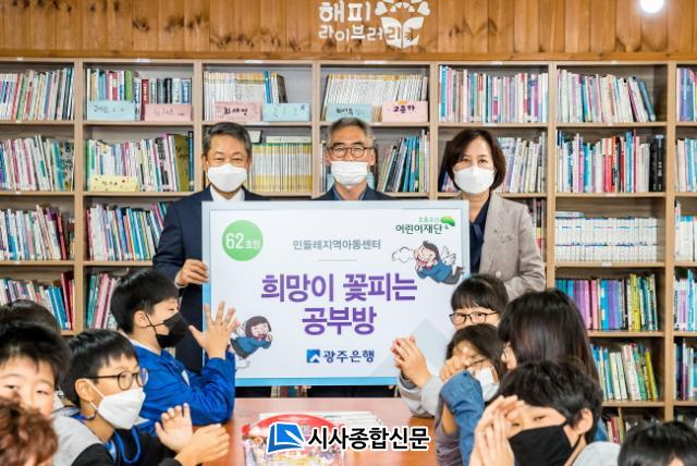 ±¤ÁÖÀºÇà Áö¿ª»ç¶ûºÀ»ç´Ü Á÷¿øµéÀº Ã¥»ó°ú ÀÇÀÚ°¡ ³ëÈĵǾî ÇнÀ¿¡ ¾î·Á¿òÀ» °Þ°í ÀÖ´Â ¡®¹Îµé·¹Áö¿ª¾Æµ¿¼¾ÅÍ¡¯¿¡ Ã¥»ó°ú ÀÇÀÚ¸¦ ±³Ã¼Çϰí, ¿Ã ¿©¸§ ¹«´õÀ§¿¡ °í»ýÇß´ø ¾ÆÀ̵éÀÇ »ç¿¬À» µè°í ÄèÀûÇÑ ÇнÀȯ°æÀ» À§ÇØ ÇнÀ½Ç¿¡ ¿¡¾îÄÁ°ú ¼±Ç³±â¸¦ ¼±¹°Çß´Ù. ¶ÇÇÑ, »õ·Ó°Ô ´ÜÀåÇÑ ¼¾ÅÍ¿¡¼ ÁغñÇØ°£ °£½ÄÀ» ¾Æµ¿µé°ú ÇÔ²² ¸ÔÀ¸¸ç, ²ÞÀ» Ű¿ö ³ª°¡µµ·Ï °Ý·ÁÇß´Ù.